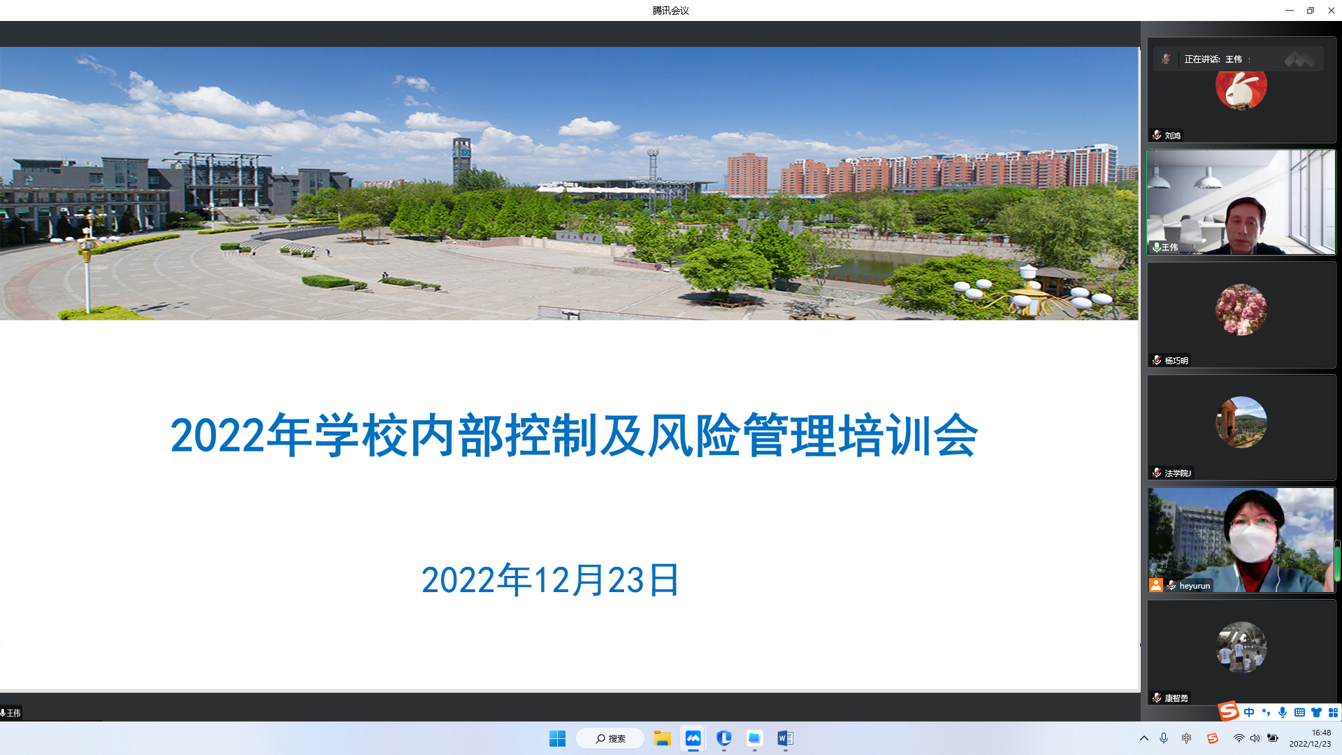 12月23日,學校舉辦內部控制專題培訓會。黨委副書記王偉,黨委常委、副校長徐丹丹出席會議。培訓會以線上方式進行,全體中層干部、相關科室負責人、項目負責人、各二級單位財務專員二百余人參會。會議由計劃財務處處長何玉潤主持。