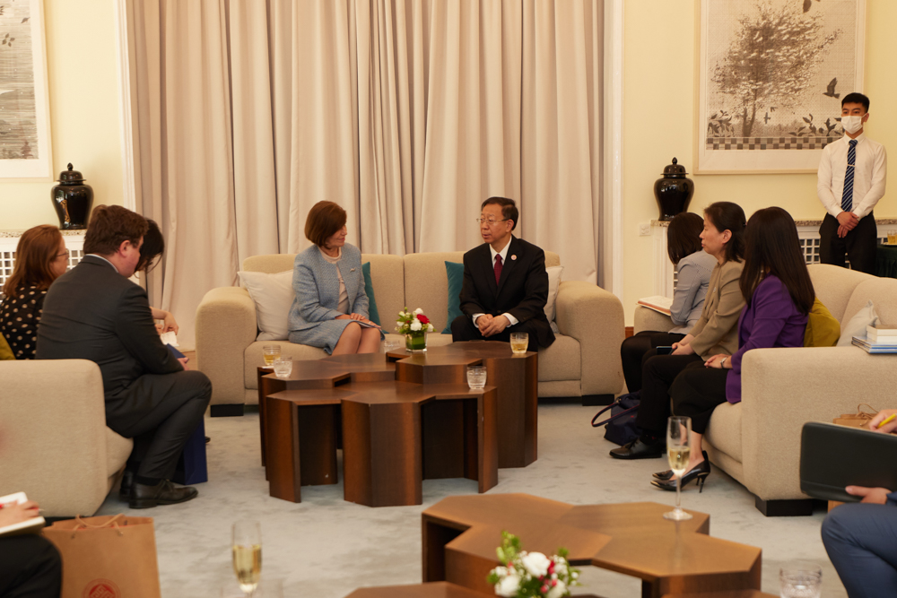 安黛文大使對孫寶國一行的到來表示歡迎,她介紹了中愛兩國在教育合作和人文交流的發展情況,并重點介紹了雙方共同設立和開展的科研合作基金項目。安黛文大使充分肯定了我校與愛爾蘭高校合作以來所取得的成績。她表示,愛爾蘭駐華大使館將積極支持北京工商大學與愛爾蘭高校在優勢學科和研究領域建立更加密切和深度的合作,并對雙方未來的合作充滿期待。