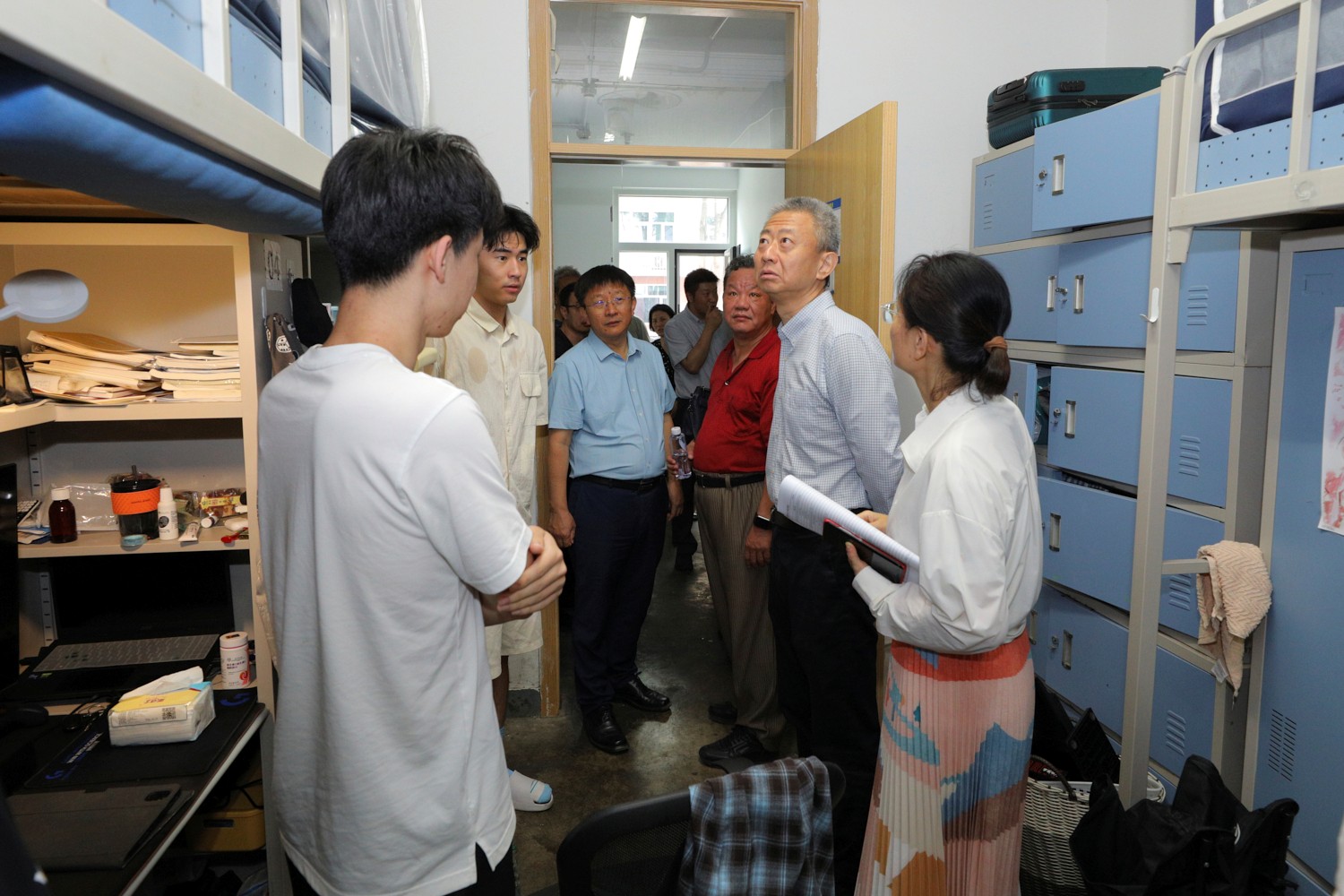 沈千帆、郭建華一行查看了實驗室設備、學生宿舍搬遷情況及阜成路校區學生宿舍施工改造情況,指出各單位要牢固樹立“以師生為中心”的工作理念,嚴把改造工程質量關和安全關,加快實驗室設備搬遷進度,統籌推動各項工作按期完成,為新學期順利開學提供堅實保障。