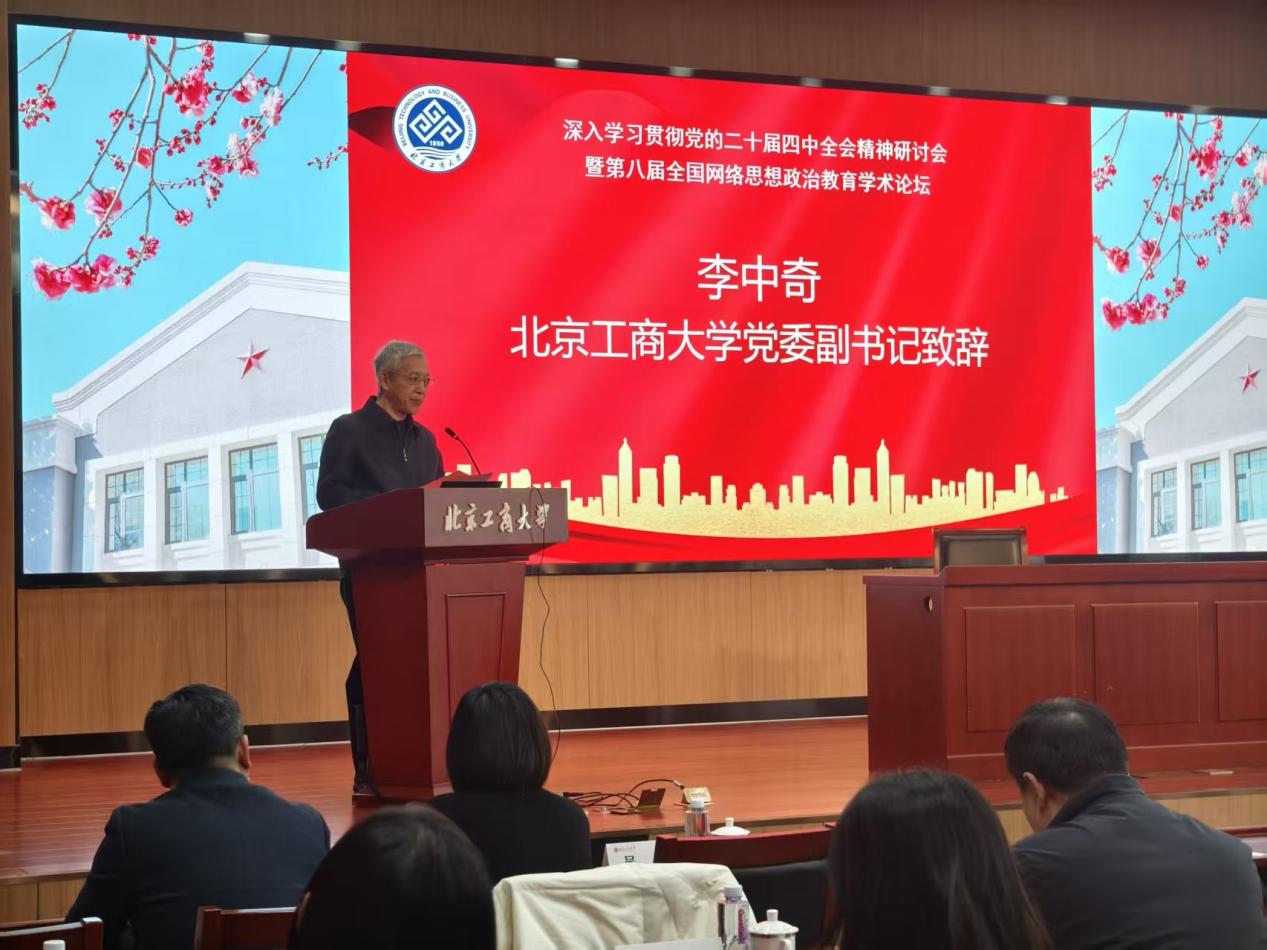 為深入學習貫徹黨的二十屆四中全會精神,進一步推進人工智能時代的網絡思想政治教育高質量發展,12月13日,由北京工商大學馬克思主義學院、北京高校中國特色社會主義理論研究協同創新中心(中國政法大學)、首都師范大學馬克思主義學院聯合主辦的學習貫徹黨的二十屆四中全會精神暨第八屆全國網絡思想政治教育學術論壇在我校阜成路校區舉行。學校黨委副書記李中奇出席論壇并致辭,首都師范大學黨委副書記王大廣、中國政法大學馬克思主義學院院長邰麗華參會并致辭。來自北京大學、清華大學、中國政法大學、首都師范大學、中共中央黨校(國家行政學院)、中國人民大學、中國社科院、重慶大學、華東師范大學、中央財經大學、北京中醫藥大學、中國礦業大學(北京)、中國石油大學(北京)、武漢理工大學、北方工業大學、北京建筑大學、北京市社科院、北京市委黨校等京內外百余所高校、科研院所和雜志社的百余位專家學者和青年學子參會。馬克思主義學院院長趙春麗主持論壇開幕式。