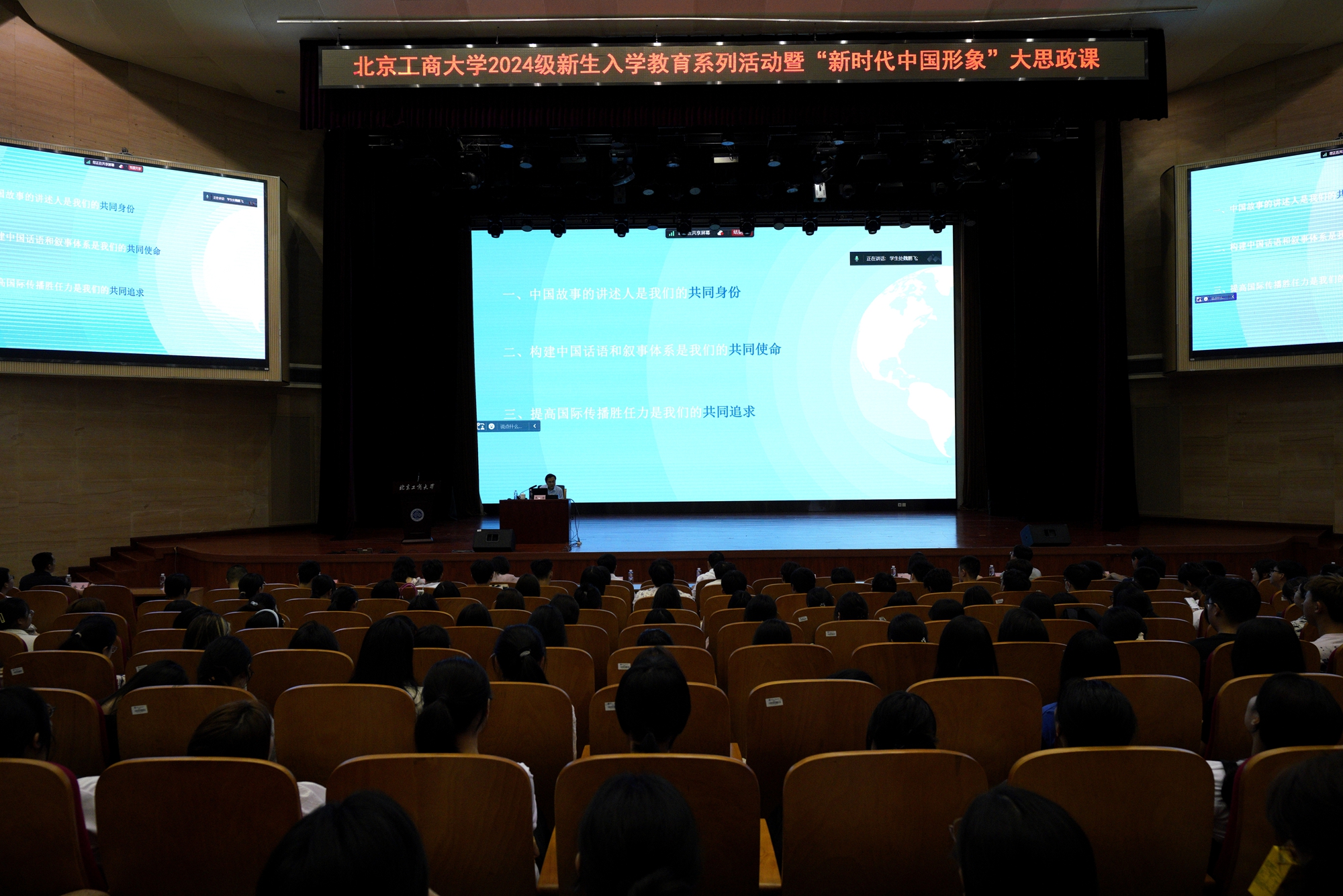 近日,中國日報社走進北京工商大學良鄉主校區,為2024級本科新生講授大思政課。通過豐富的案例和鮮活的實踐,不僅打造了一個有溫度、深度、厚度的思政課堂,同時也是學校以“大思政課”拓展全面育人新格局的又一次創新實踐。講座由學校黨委常委、副校長寇紅江主持。