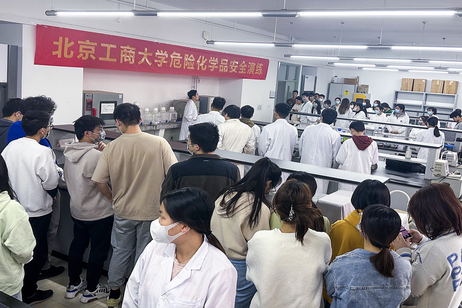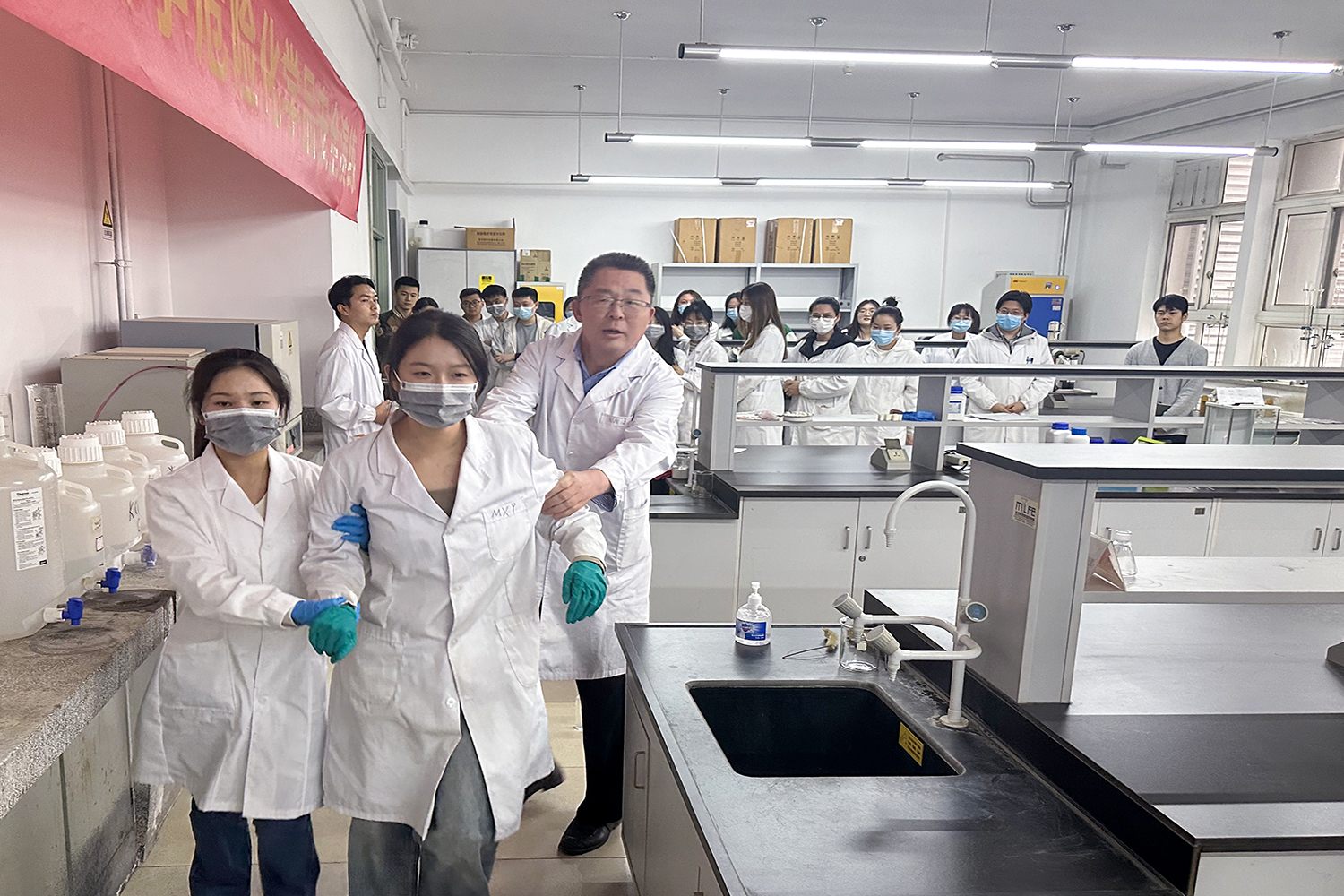 危險化學品應急演練模擬濃鹽酸不慎泄露的突發事件,對事故報告、人員疏散、應急防護裝備穿戴、現場處置、傷員救治等環節進行了全流程、全要素演練,相關學院50余名師生現場觀摩。對增強師生實驗安全意識,提高師生危險化學品應急處置能力起到了積極作用。此次演練還進行了全程錄制,方便未現場觀摩的師生后期進行學習。