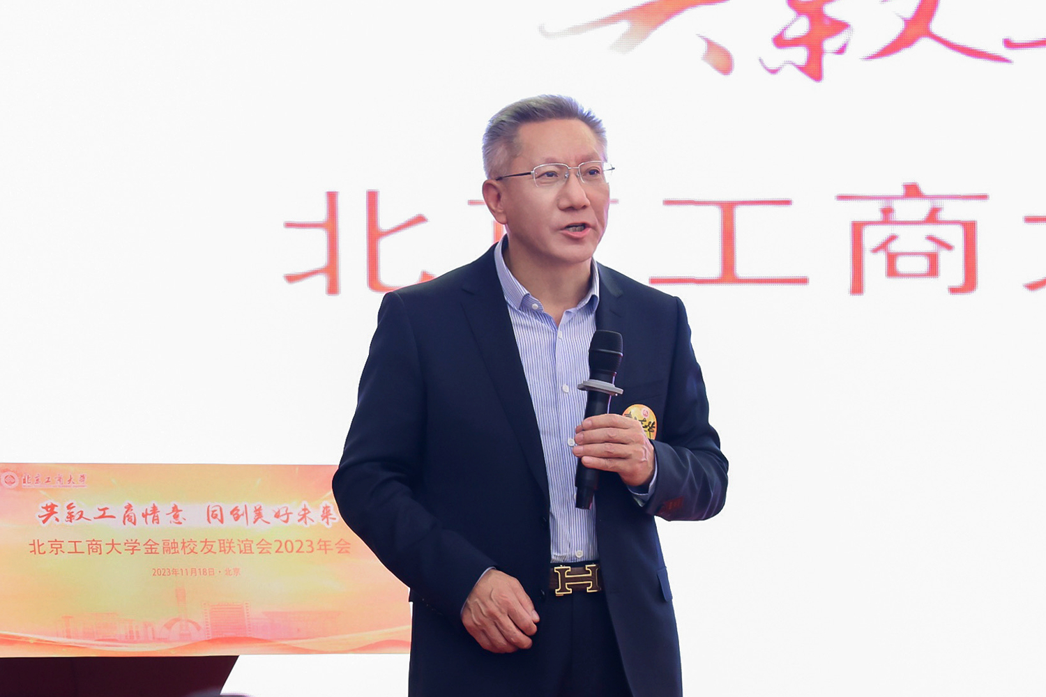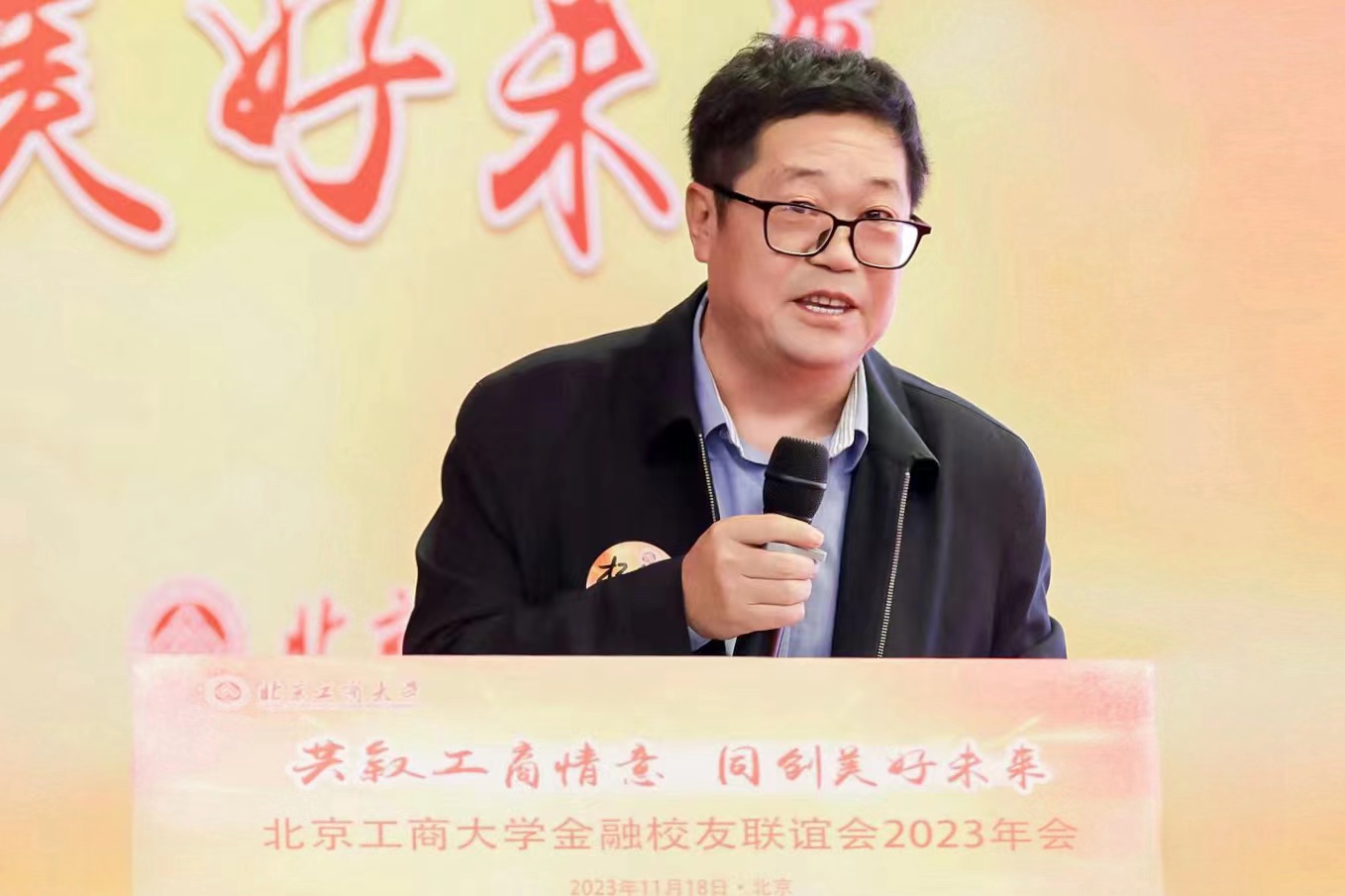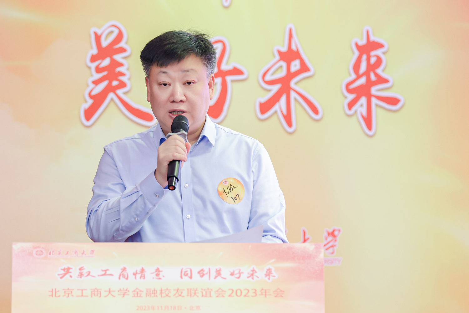 郭建華代表學(xué)校向年會的召開表示熱烈的祝賀,向長期以來關(guān)心、支持學(xué)校發(fā)展建設(shè)的各界校友表示誠摯的感謝。他談到,金融校友聯(lián)誼會自2016年成立以來,匯聚學(xué)校金融與投資相關(guān)領(lǐng)域校友,在團結(jié)校友、搭建平臺、整合資源、促進合作等方面發(fā)揮了積極的作用。不少校友百忙之中回到學(xué)校,參加學(xué)術(shù)論壇、就業(yè)指導(dǎo)、企業(yè)招聘、助學(xué)捐贈、課程建設(shè)等活動,為學(xué)校的發(fā)展建設(shè)出謀劃策、提供助力。當前,學(xué)校正在緊緊圍繞建設(shè)特色鮮明的高水平研究型大學(xué)這一主線,全面落實良鄉(xiāng)主校區(qū)和阜成路校區(qū)兩校區(qū)發(fā)展規(guī)劃,加快推進轉(zhuǎn)型發(fā)展和學(xué)部改革,歡迎并期待校友們積極參與到學(xué)校的各項發(fā)展建設(shè)中來,學(xué)校也將著力為校友們的個人事業(yè)發(fā)展提供更加堅強有力的服務(wù)與支持。他表示,學(xué)校高度重視金融校友聯(lián)誼會的發(fā)展,期待在新一屆理事會的領(lǐng)導(dǎo)下,在學(xué)校校友會的支持下,金融校友聯(lián)誼會繼續(xù)搭建校友聯(lián)絡(luò)感情、共享資源的平臺,創(chuàng)新校友深度交流、蓄力提升的方式,培養(yǎng)校友情系母校、報效國家的理念,發(fā)揮行業(yè)集聚人才、貢獻智慧的作用,走出一條建設(shè)一流行業(yè)校友會的新路,為中國式現(xiàn)代化建設(shè)提供北工商方案,貢獻北工商力量。