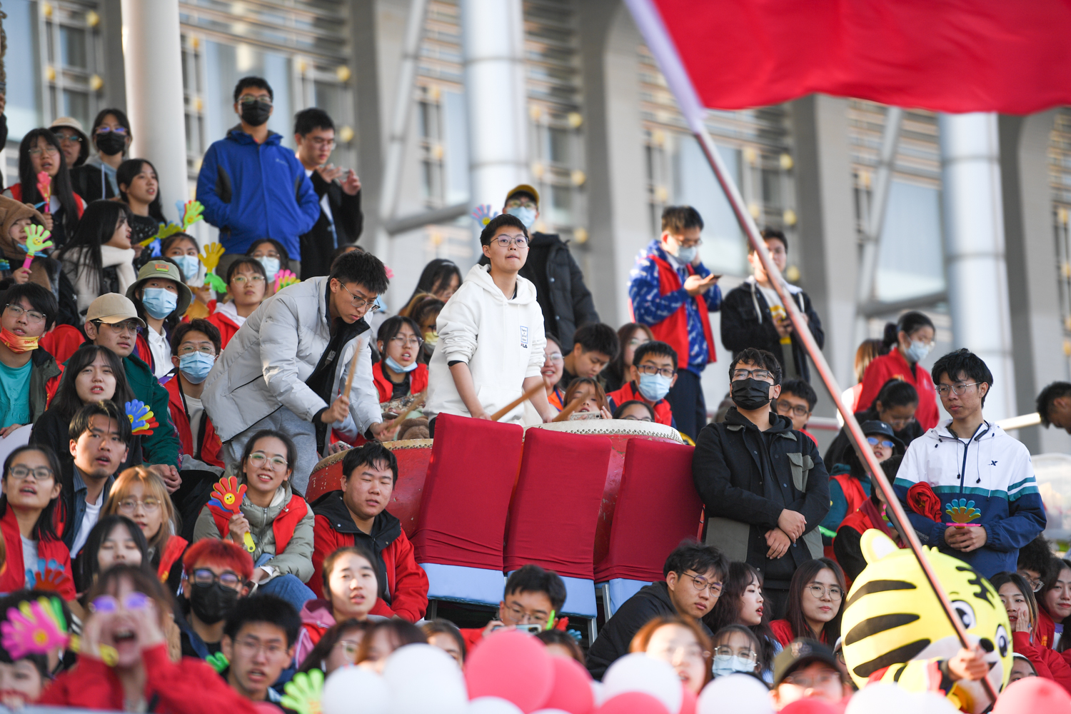 各學院各色旗幟和精心準備的橫幅將柏林藍操場裝扮一新。伴隨著運動員進行曲,學院方陣、國旗護衛隊以飽滿的熱情步入運動場。整齊的方陣彰顯著青春朝氣;國旗護衛隊步伐鏗鏘、英姿颯爽;運動員們熱情洋溢,自信昂揚;看臺上,觀眾井然有序,歡呼聲響徹會場。體育與藝術教學部、學生處、公共事務處、保衛處、校團委、黨委宣傳部等相關部門工作人員也已就位,為比賽的順利進行保駕護航。