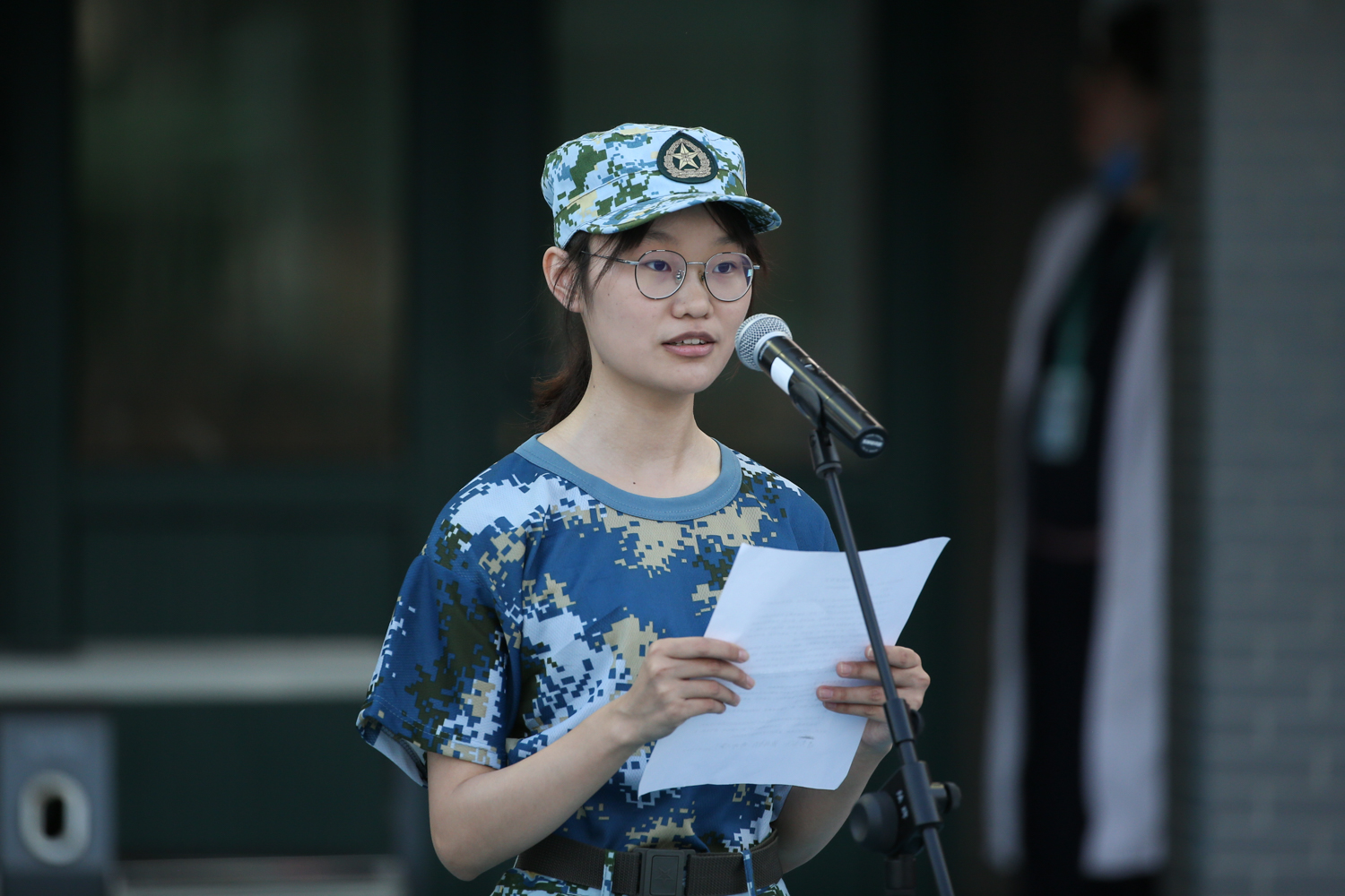 傳媒與設計學院、四營11連2班王子玥代表參訓學生發言。她代表全體2020級參訓學員向教官、老師莊嚴承諾:聽從指揮,服從命令,嚴格遵守軍訓期間的各項規定和要求;磨練意志,以高標準嚴格要求自己,注意安全,認真完成訓練項目,做到不驕躁、不氣餒;熱愛集體,團結一致,有集體榮譽感,同學間做到互幫互助,互敬互愛;學以致用,將軍訓所學到的優秀品質與作風延續到以后的學習生活中。