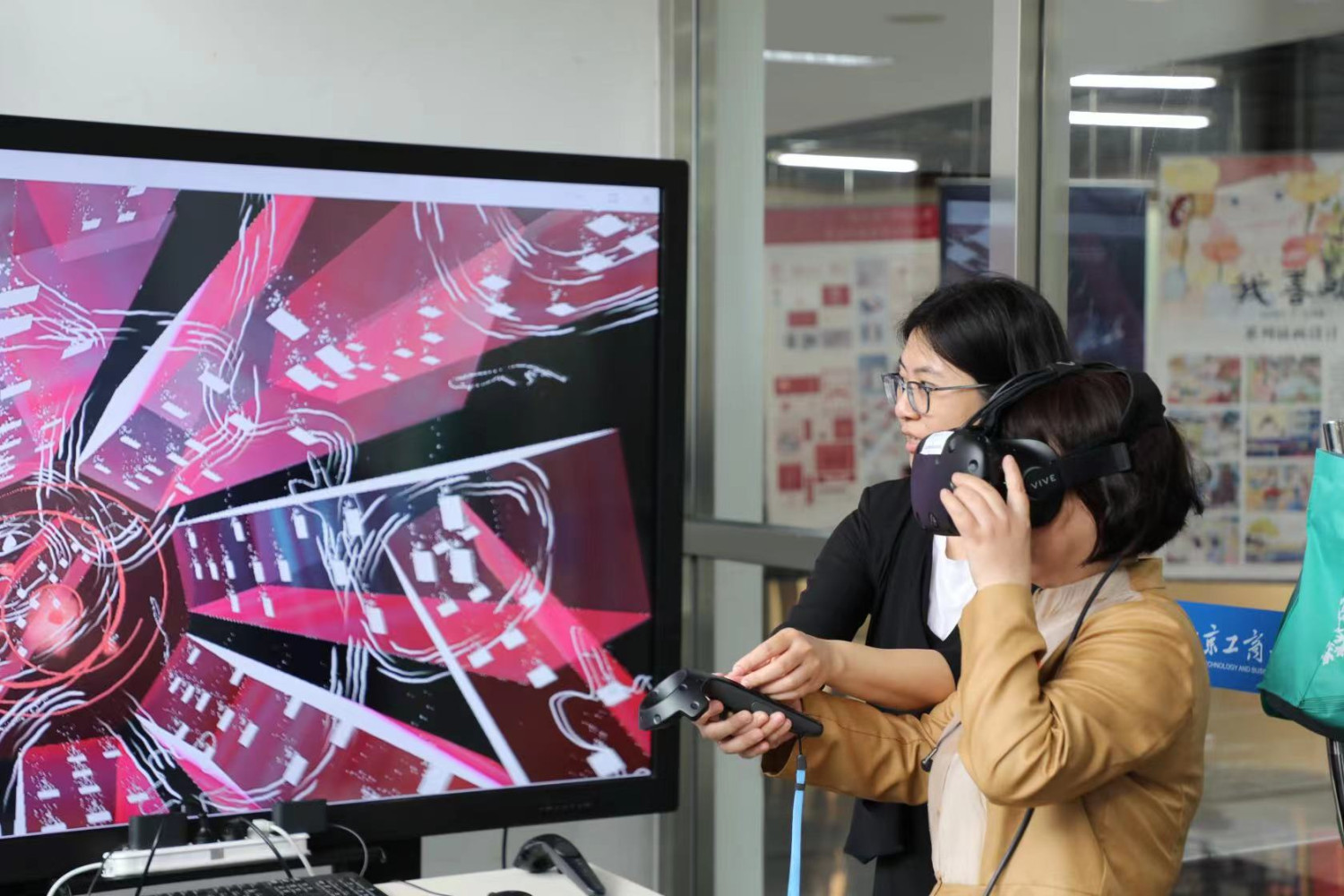 學(xué)校黨委常委、紀(jì)委書記、監(jiān)察專員歐陽媛與學(xué)院領(lǐng)導(dǎo)和各院校代表一同為本次開幕式剪彩。歐陽媛和學(xué)院領(lǐng)導(dǎo)及院校代表參觀了展覽,認(rèn)真觀看學(xué)生作品,并親身體驗(yàn)了我校學(xué)生創(chuàng)作的虛擬現(xiàn)實(shí)設(shè)計(jì)作品,高度評價(jià)了本次活動(dòng)的意義和成果。