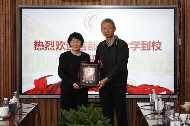 曹文軍對北京工商大學的熱情接待表示感謝,并高度肯定了雙方長期以來合作取得的成效。她強調,首都師范大學與北京工商大學在辦學理念、發展思路、人才培養等方面高度契合,未來合作前景廣闊。她指出,面對新時代高等教育發展的新要求,希望兩校進一步加強戰略協同,聚焦學科建設、人才培養、教育教學等方面,推動優勢互補、資源共享,共同探索高等教育高質量發展新路徑,為首都“四個中心”建設貢獻力量。