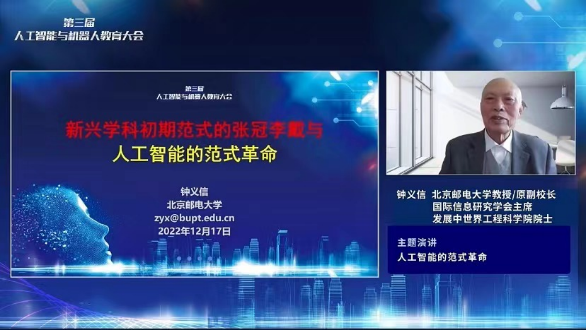 12月17日,由中國教育發展戰略學會人工智能與機器人教育專業委員會主辦,我校人工智能學院與中關村互聯網教育創新中心聯合承辦的“第三屆人工智能與機器人教育大會”在線上舉辦。大會邀請了人工智能與機器人教育行業相關的政府部門及行業組織領導、專家學者、大中小學教師、企業家、行業媒體等社會各界人士,共謀人工智能與機器人教育改革路徑,群策群力推動人工智能產業提升與人才培養模式的創新發展。搜狐教育對本次大會進行了全程直播,累計近30萬人觀看了本次大會的精彩報告。我校黨委常委、副校長劉敏華出席會議并致辭,人工智能學院師生近300人參加了此次會議。