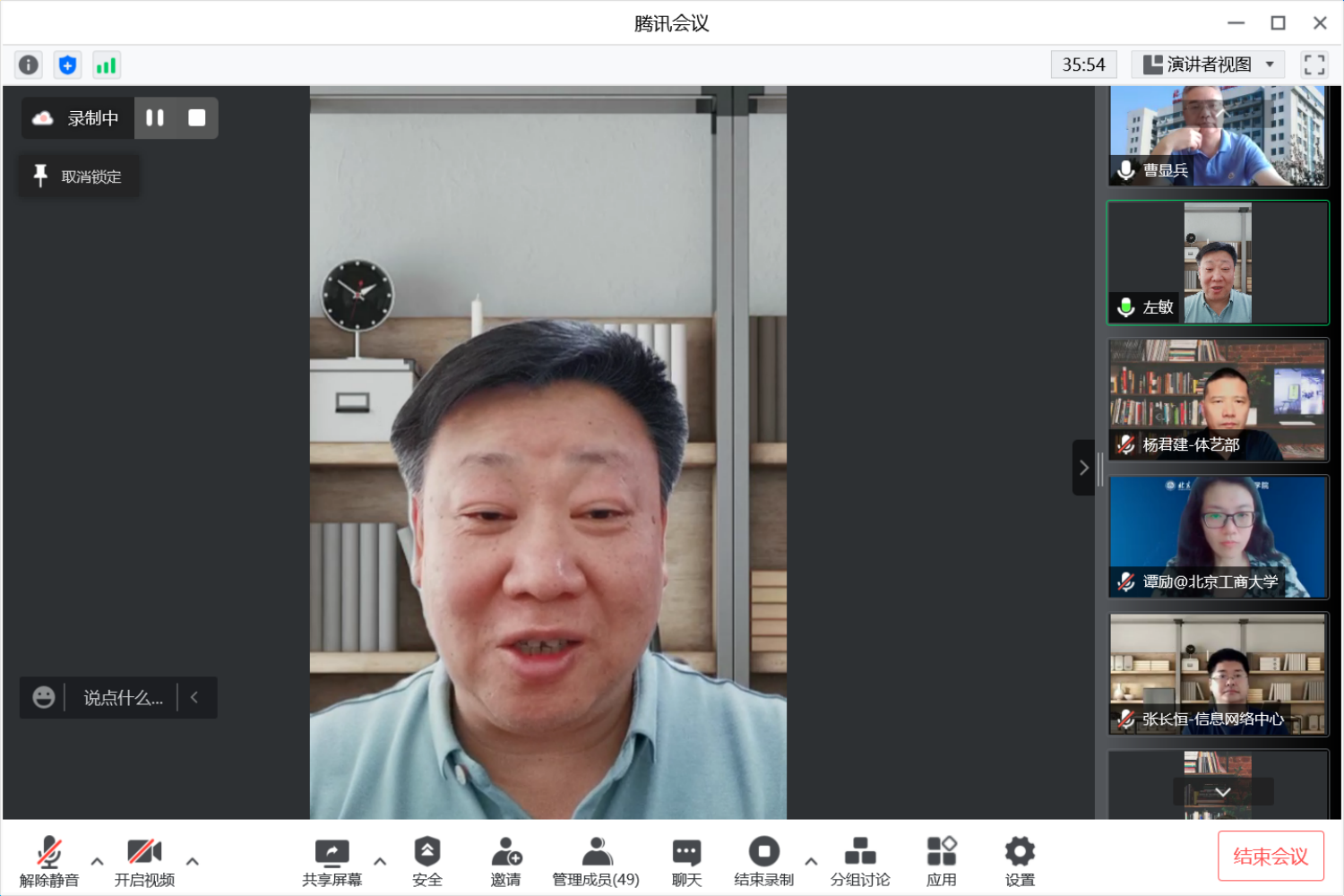 各學院(部)匯報期中線上教學檢查情況,分別就線上教學秩序、教學過程、學生出勤、師生線上座談、考試等實際教學問題的檢查情況進行了匯報,對存在的問題進行了分析,提出了改進的措施。本科教學督導組組長、督導專家馬廷鈞反饋了督導專家組期中線上教學督導檢查情況。本學期線上教學情況良好,教師情緒飽滿、備課充分、表達清晰、教學進度合理。教師嘗試使用豐富的線上手段開展教學,師生互動情況反饋良好。線上教學也反映出一些不足,學校、學院和教師要堅持問題導向,分析總結,線上教學手段要結合學生的實際情況更應突出課程重點。