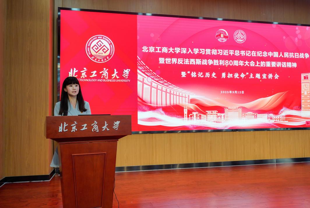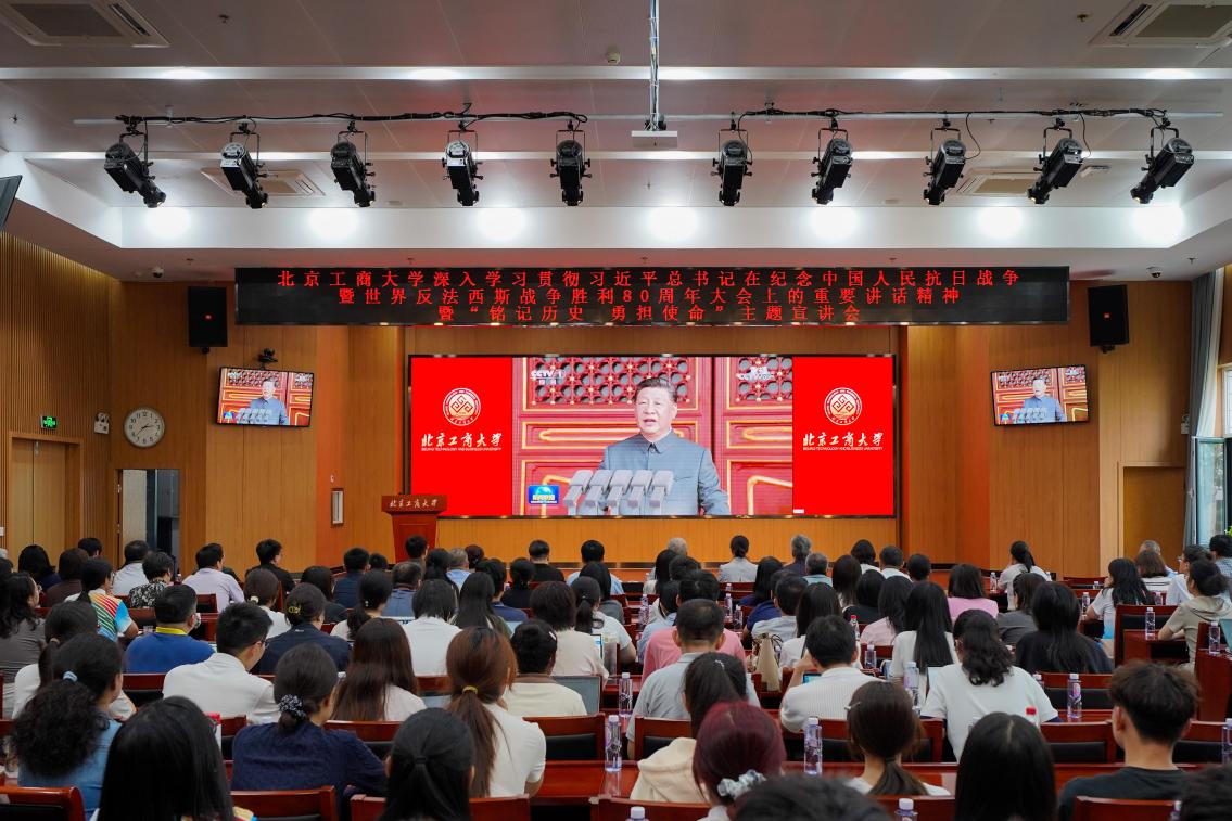 隨后,全體師生共同觀看了《銘記歷史 勇擔使命》北京工商大學紀念中國人民抗日戰爭暨世界反法西斯戰爭勝利80周年專項活動紀錄片,這部專題片,不僅是國家盛典的縮影,更是北工商師生參與其中所展現出的責任擔當與青春風采,為全體師生上了一堂深刻的愛國主義思政課。