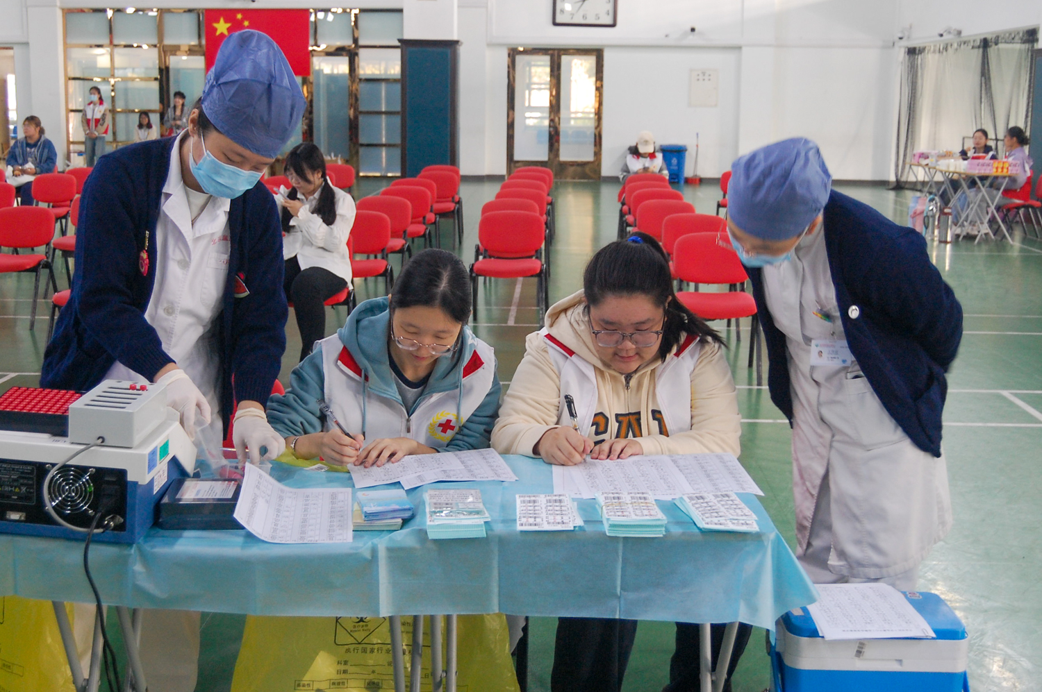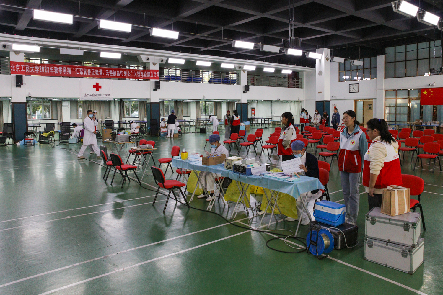10月17日,由我校紅十字會學生分會組織的無償獻血活動在良鄉主校區文體館一層舉行。廣大師生員工積極參與,奉獻愛心、回饋社會,用點滴血液匯聚成川流不息的生命長河。