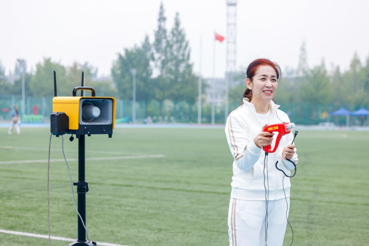 學(xué)校黨委常委、副校長徐丹丹宣布運動會開幕并為女子100米決賽鳴槍。