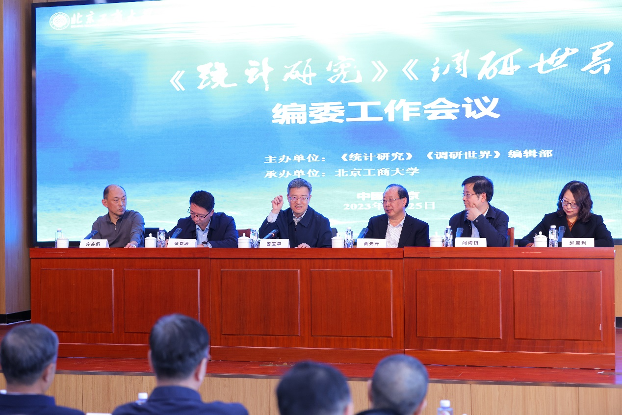 曾玉平致辭,代表國(guó)家統(tǒng)計(jì)局和中國(guó)統(tǒng)計(jì)學(xué)會(huì)向《統(tǒng)計(jì)研究》《調(diào)研世界》兩刊編委、北京工商大學(xué)領(lǐng)導(dǎo)、老師和同學(xué)們表示感謝,并著重對(duì)期刊下一步發(fā)展指明了方向,提出了要求。他指出,近年來(lái),《統(tǒng)計(jì)研究》《調(diào)研世界》在持續(xù)服務(wù)黨和國(guó)家重大戰(zhàn)略,繁榮統(tǒng)計(jì)學(xué)術(shù)研究,服務(wù)統(tǒng)計(jì)現(xiàn)代化改革,引領(lǐng)經(jīng)濟(jì)社會(huì)統(tǒng)計(jì)創(chuàng)新研究等方面取得了新的成績(jī)。面對(duì)新形勢(shì)和新變化,《統(tǒng)計(jì)研究》和《調(diào)研世界》必須始終堅(jiān)持以習(xí)近平新時(shí)代中國(guó)特色社會(huì)主義思想為指導(dǎo),堅(jiān)持問(wèn)題導(dǎo)向和前瞻思維,為推動(dòng)我國(guó)統(tǒng)計(jì)事業(yè)持續(xù)健康發(fā)展提供智力支持。