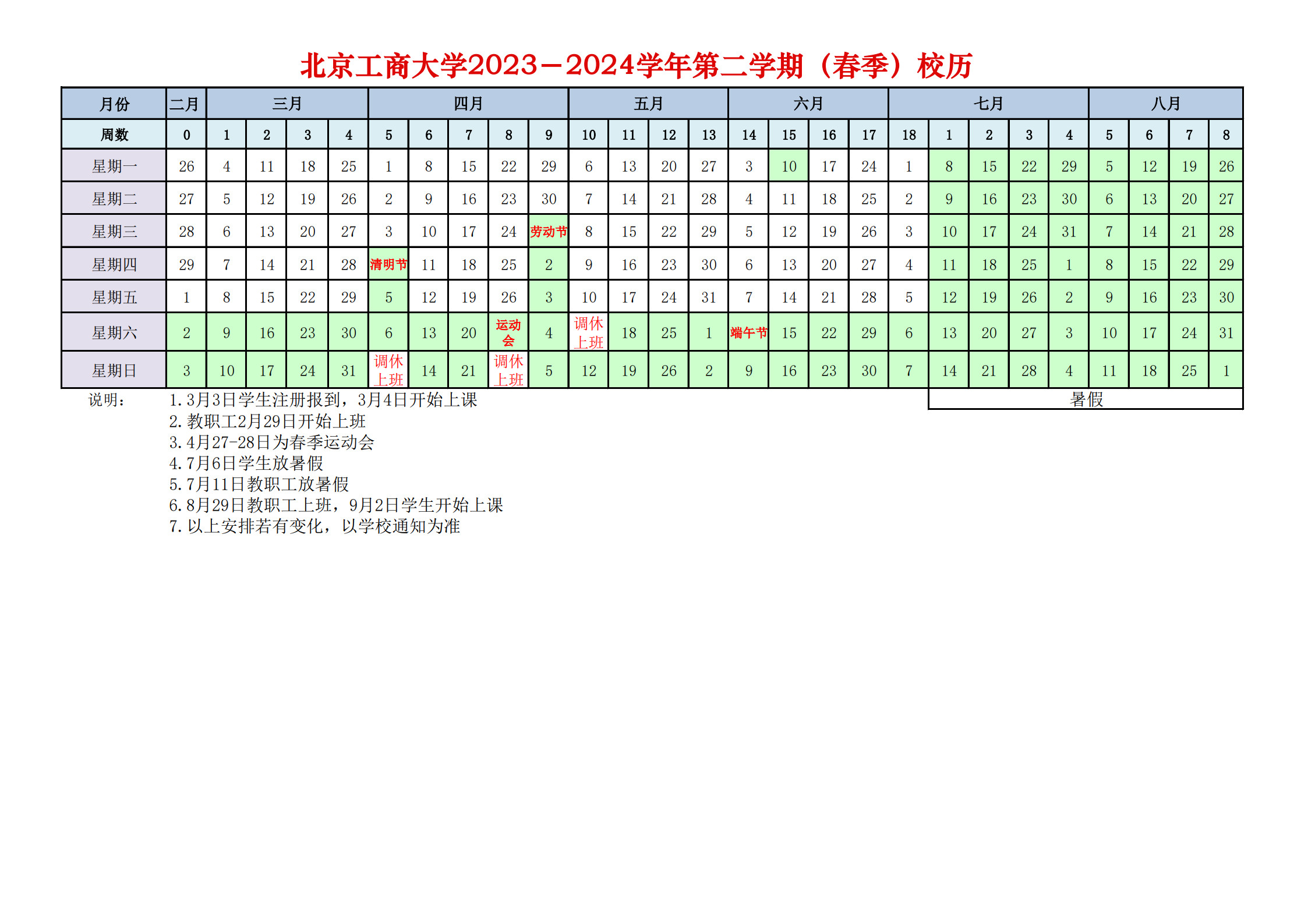 2023-2024學(xué)年第二學(xué)期(春季)校歷