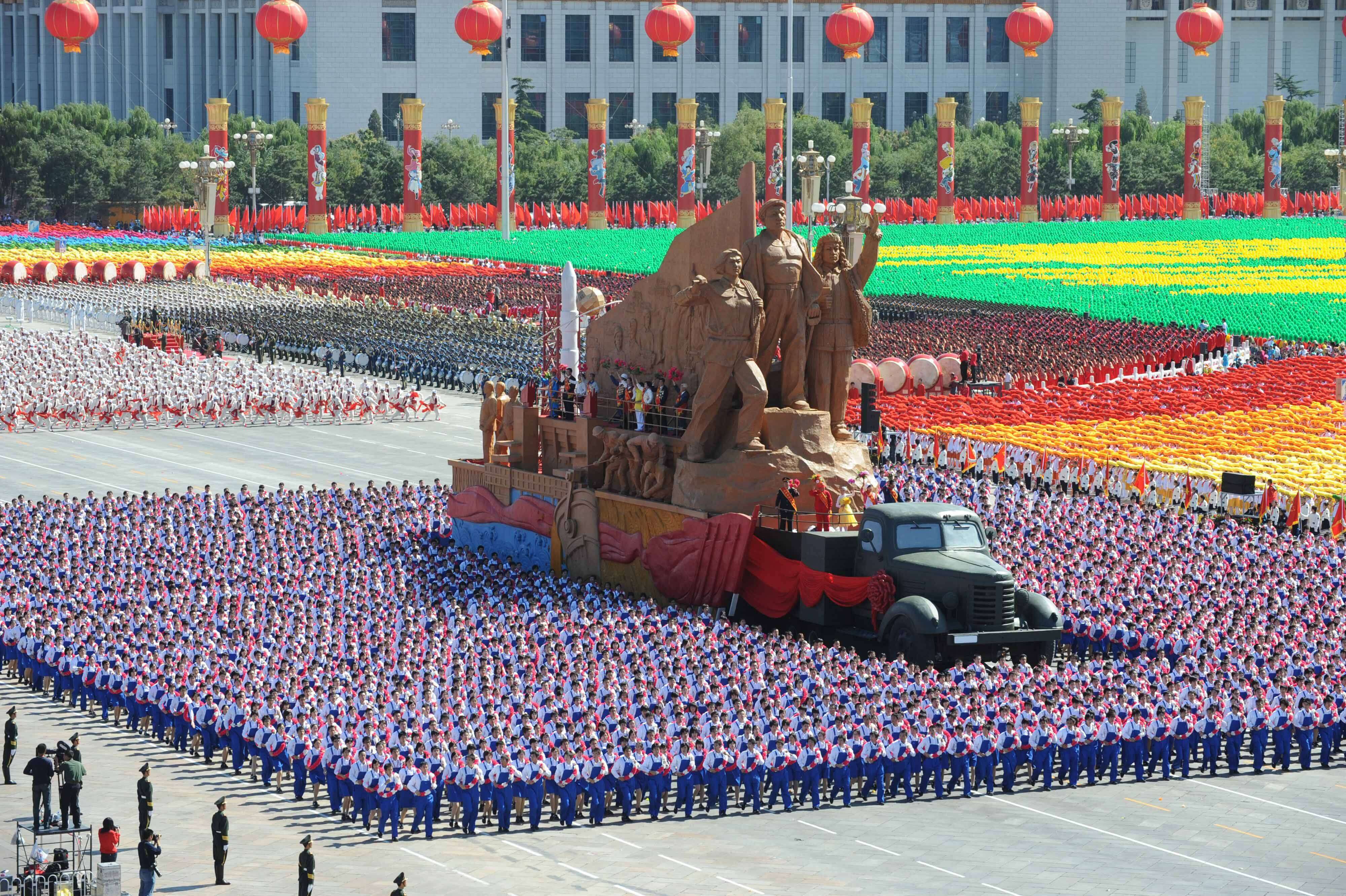 圖3:2009年10月1日 我校學生參加國慶60周年群眾游行“艱苦創業”方陣
