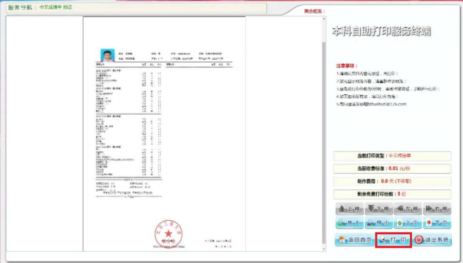 每人在校期間可以免費(fèi)打印中文成績(jī)單、英文成績(jī)單、中文在讀證明、英文在讀證明各10份,其他證明材料各免費(fèi)打印5份,超出部分按5元/份收費(fèi)。
