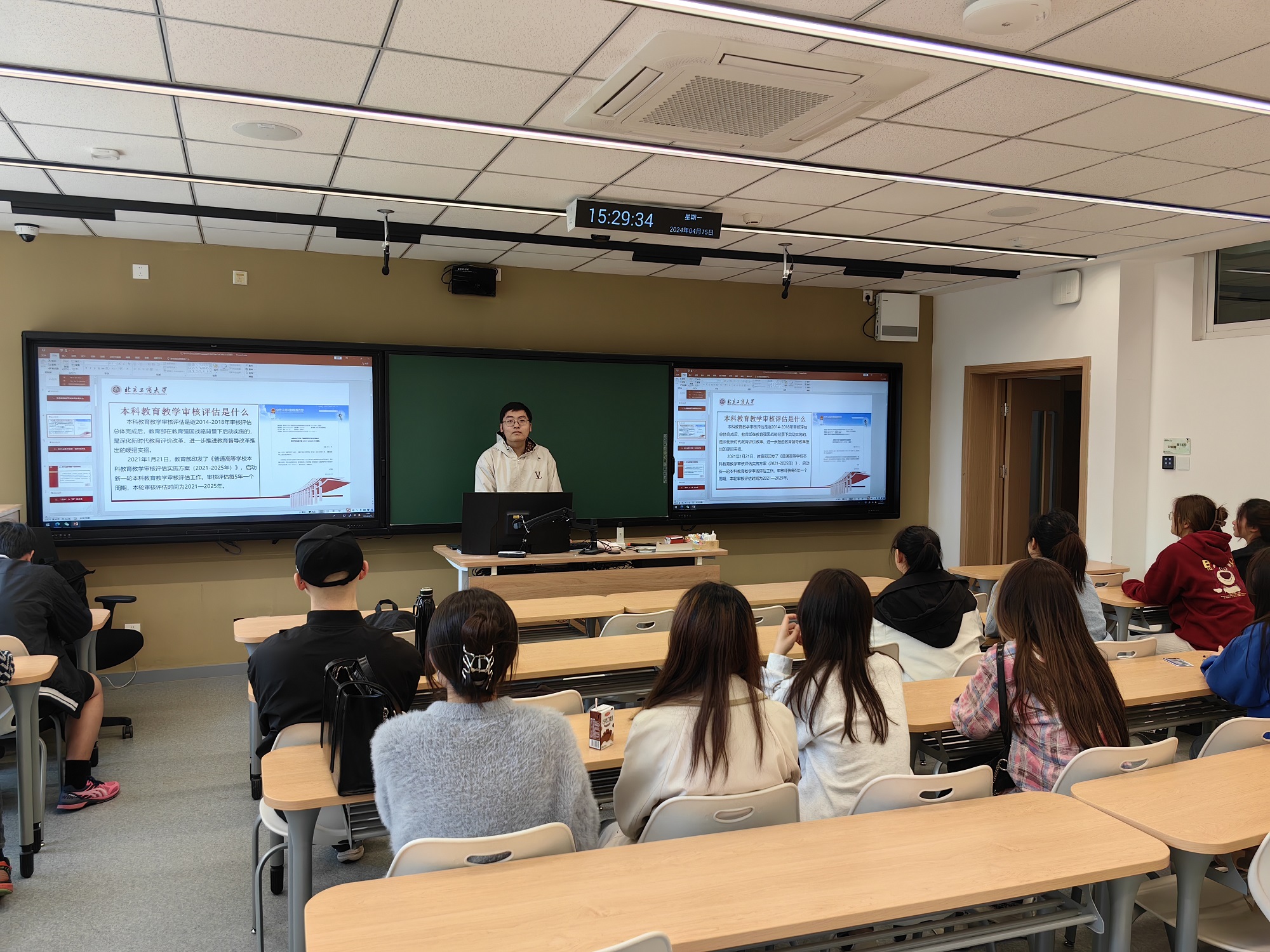 該班會由各學(xué)院具體組織實施,各班班主任圍繞“新一輪本科教育教學(xué)審核評估是什么,‘迎評’與‘我’的關(guān)系,‘我’為‘迎評’做些什么,怎么做”四個方面,為學(xué)生進(jìn)行詳細(xì)解讀,帶領(lǐng)學(xué)生共同學(xué)習(xí)迎評促建應(yīng)知應(yīng)會,了解評估要求,深化對本科教育教學(xué)審核評估的重要性認(rèn)識。此外,在班會中,同學(xué)們也紛紛表示,將從自身做起,嚴(yán)格遵守學(xué)校規(guī)章制度,認(rèn)真學(xué)習(xí)迎評促建知識,專注課程學(xué)習(xí),養(yǎng)成良好的學(xué)習(xí)行為習(xí)慣,為學(xué)校迎檢工作貢獻(xiàn)力量。